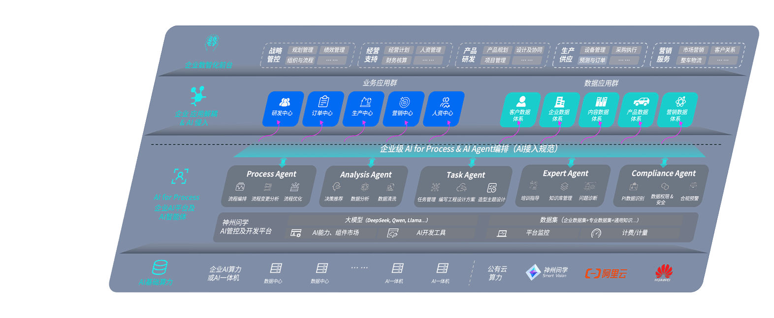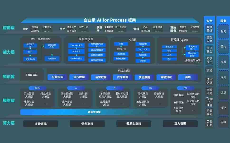 端到端的一站式AI工作空间深度融合了从企业战略规划到日常经营的全流程业务板块,,,,定向解决车企内部领域多、、、部门多、、、、链条长、、、场景碎片化等难题,,,,支持车企快速构建以AI为核心的生产力写作体系,,,实现任务执行与AI能力的无缝集成与交互